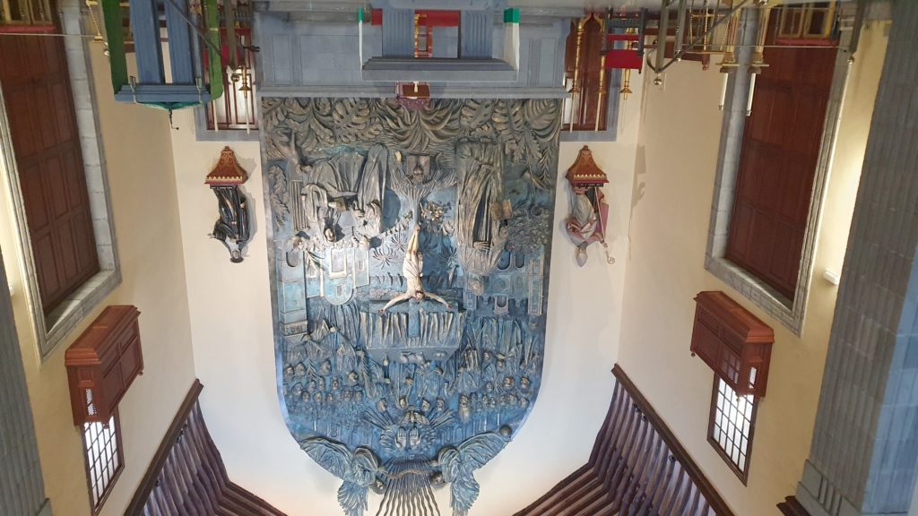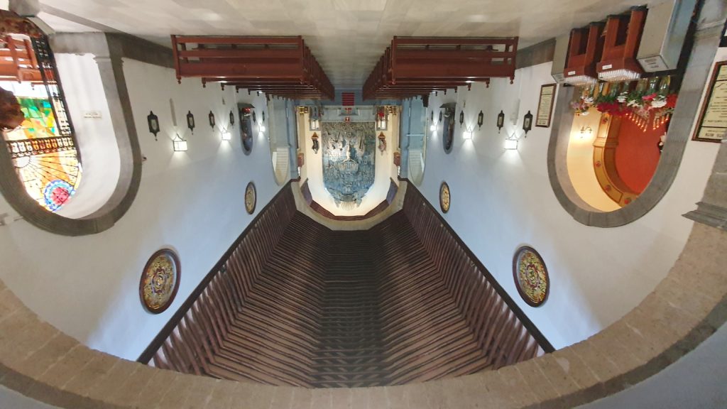 Puis on visite l’intérieur de San Agustin avec sa belle charpente en forme de coque de bateau renversée…
