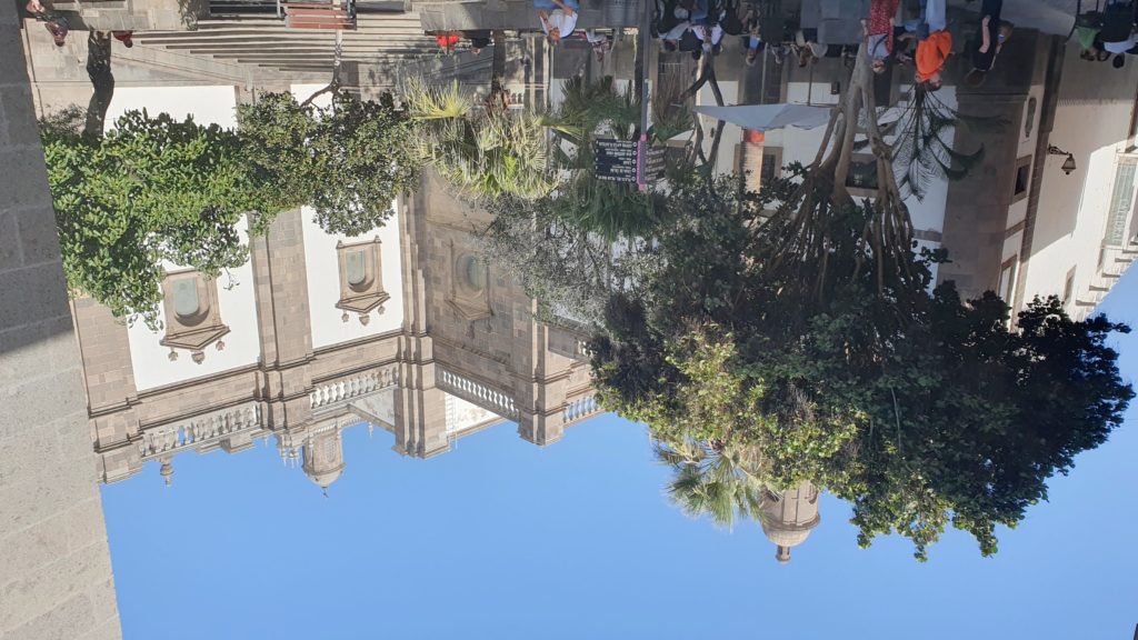 On marche ensuite vers le vieux quartier de Vegueta où se trouve la cathédrale Santa Ana en pierre grise… Elle domine la place où se trouvent l’Ayuntamiento et la Casa Regental.
