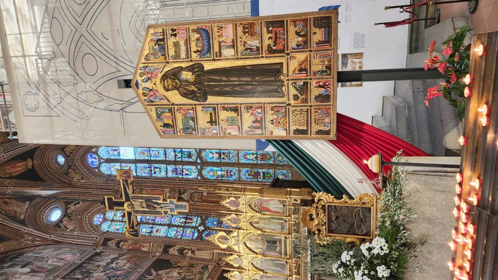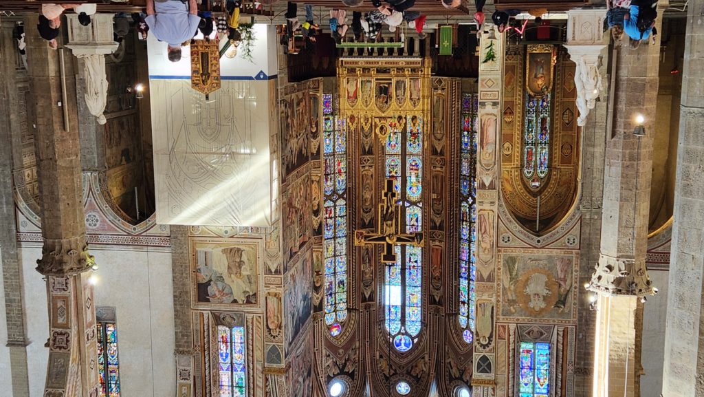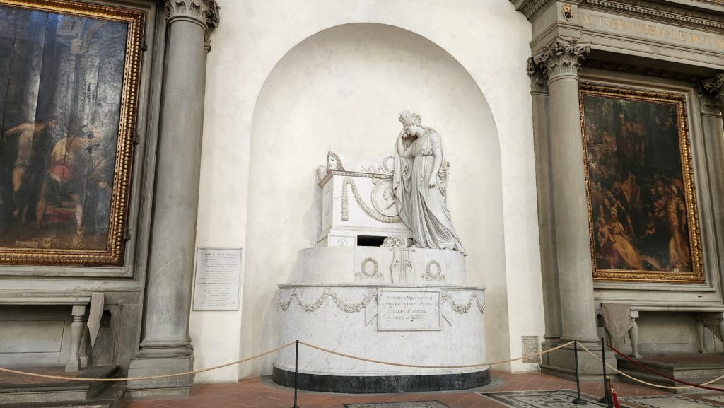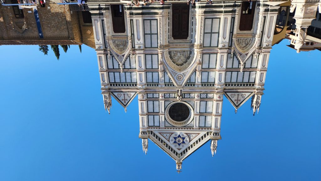 On sort à midi et on va se promener dans Florence en attendant 13h 15 heure du repas dans un restaurant de viande. Puis l’après-midi, on visite Santa Croce : joyau de l’architecture gothique florentine et Panthéon des Illustres :