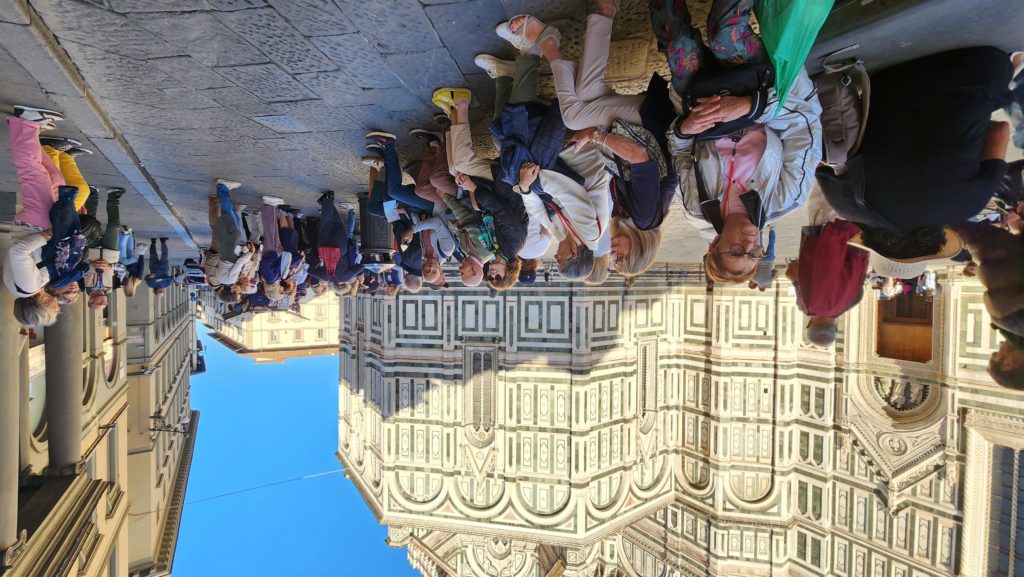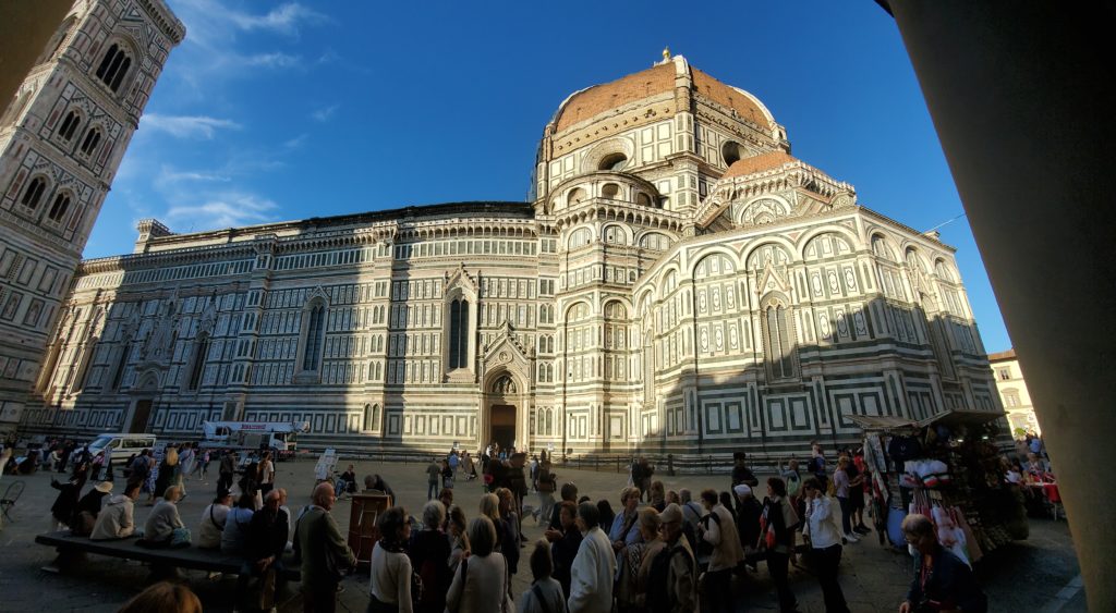 Puis on passe devant la Loggia de Lanzi, la piazza della Signoria et enfin le Dôme dont on admire le Campanile de Giotto et la coupole de Brunelleschi.