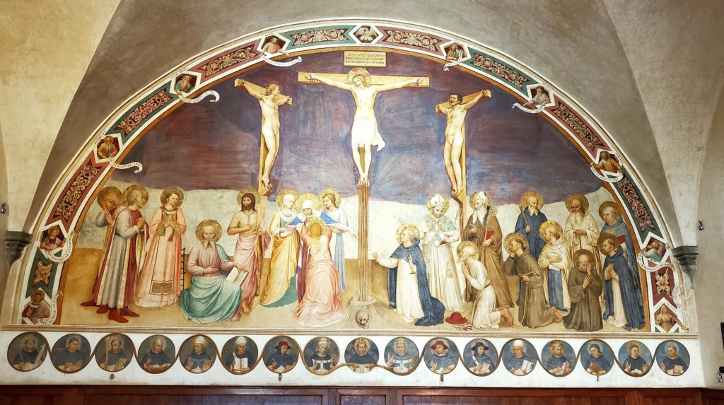 La Crucifixion et saints est une fresque monumentale de 550 × 950 cm réalisée par Fra Angelico vers 1441-1442 sur le tympan nord de l’ex-salle capitulaire du couvent San Marco :