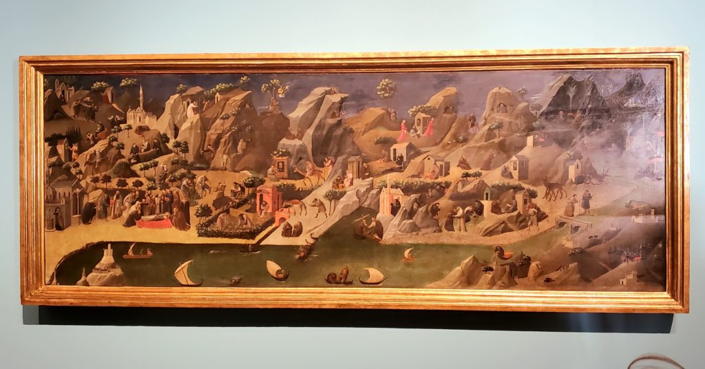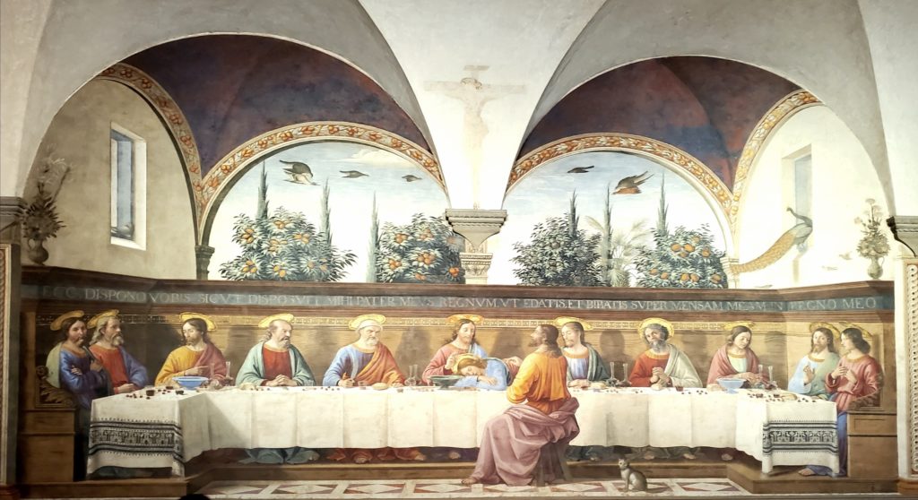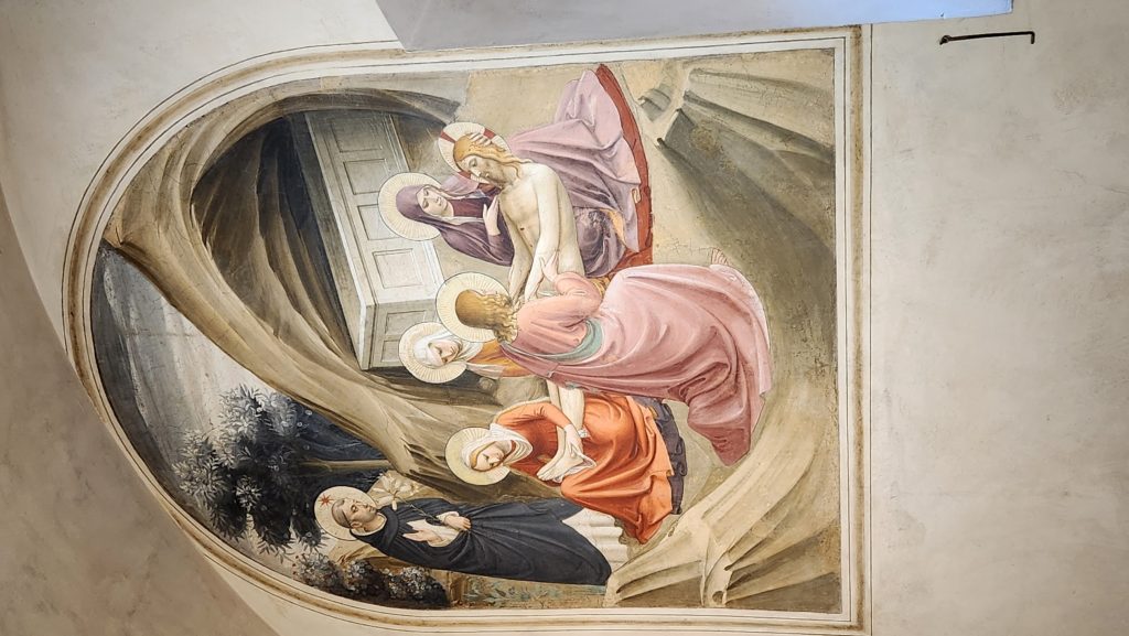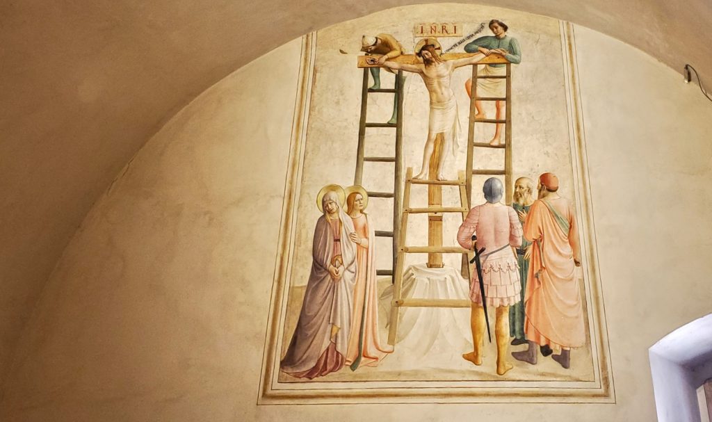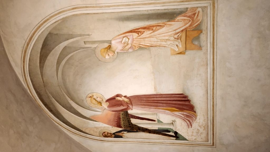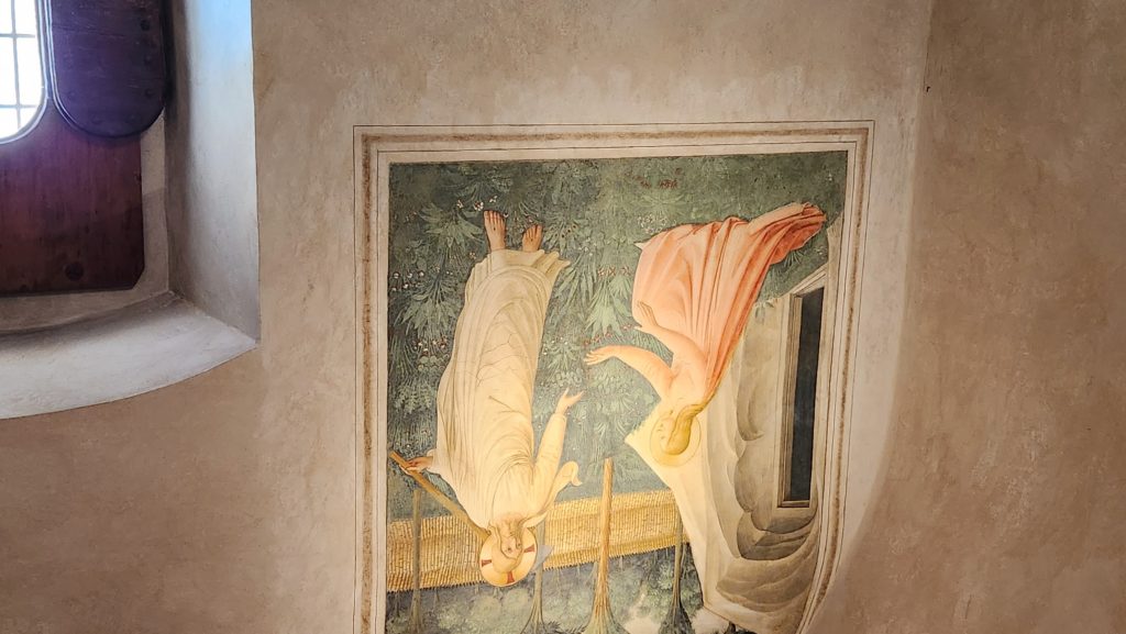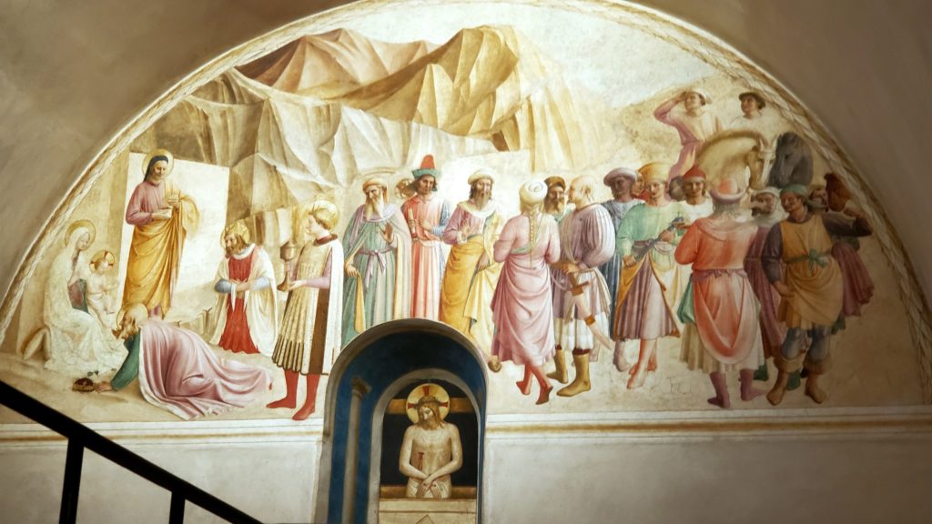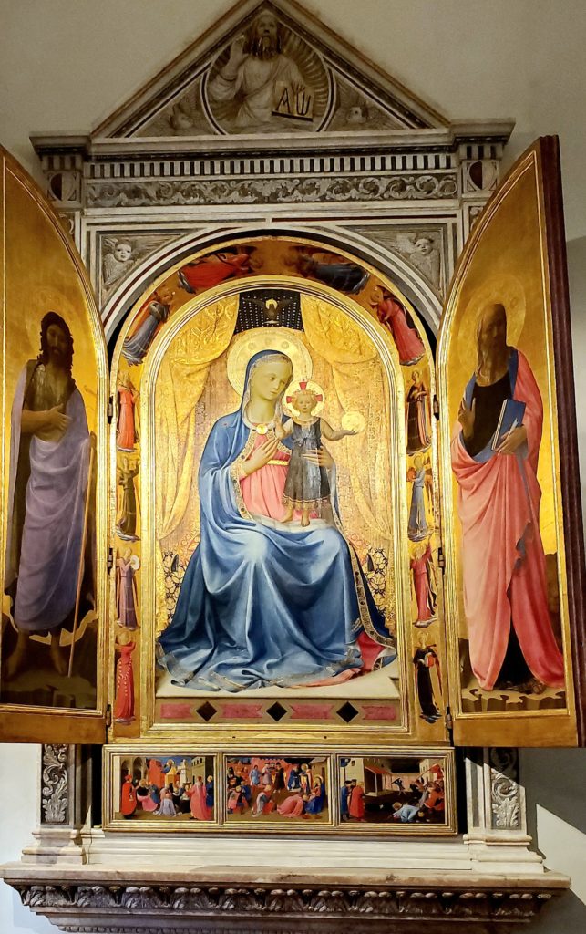 Soleil on part à pied visiter le Musée San Marco installé dans le couvent San Marco : monastère reconstruit par Michelozzo. On y trouve la majeure partie des oeuvres de Fra Angelico avec au départ une exposition de ces oeuvres…
